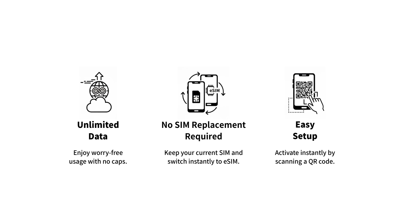 Unlike traditional SIMs, eSIMs are digital rather than a physical card that you insert into your device. You can add a new line using a QR code, no tools or store visits required.