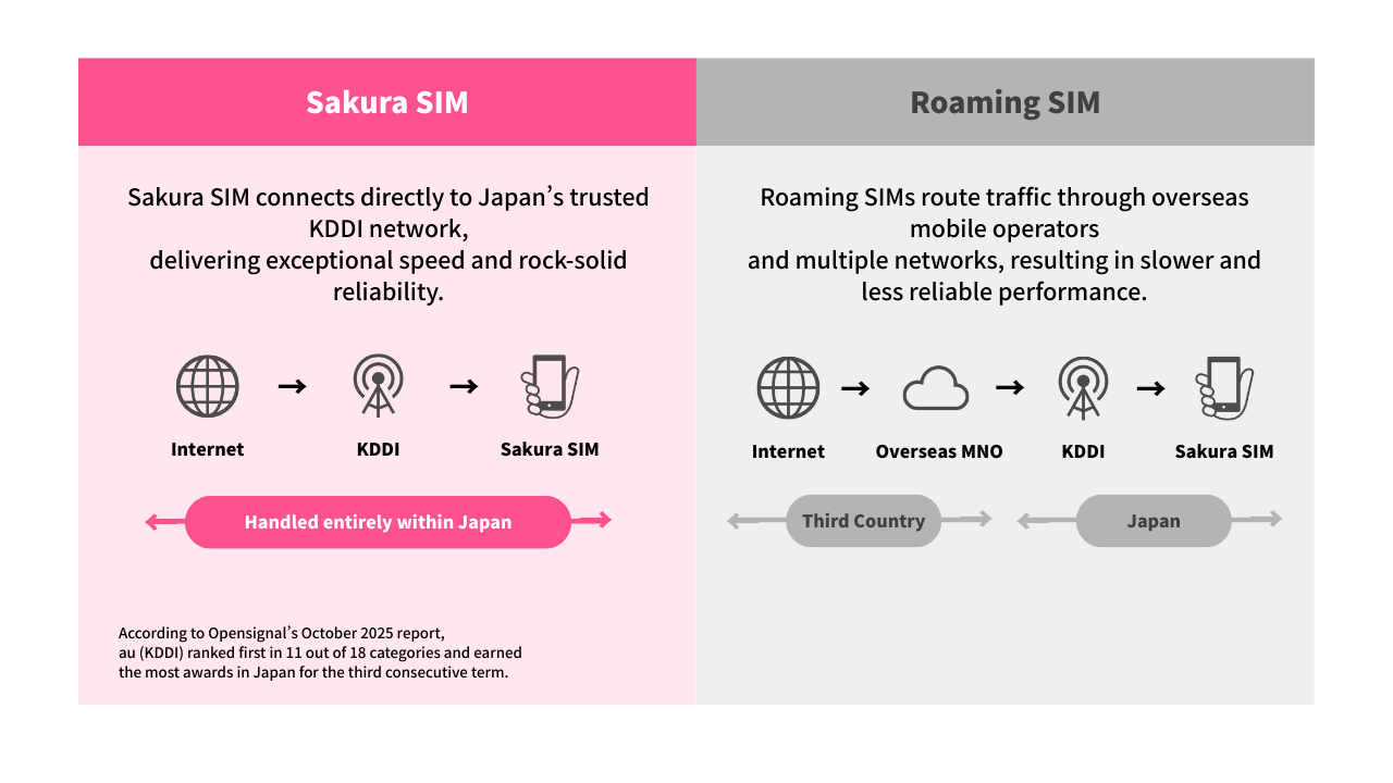 I had online meetings every day while in Japan, so stable communication was of the utmost importance. The overseas eSIM I used previously had severe delays and sometimes the audio would cut out, but I was surprised that Sakura SIM was as stable as my home Wi-Fi. It supports 5G, so video uploads are smooth. I also feel very secure knowing I'm directly connected to Japan's au (KDDI) network.